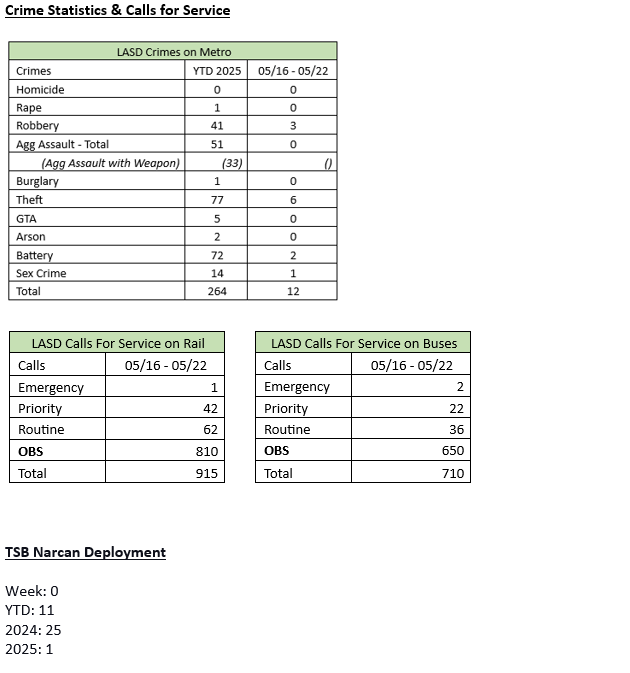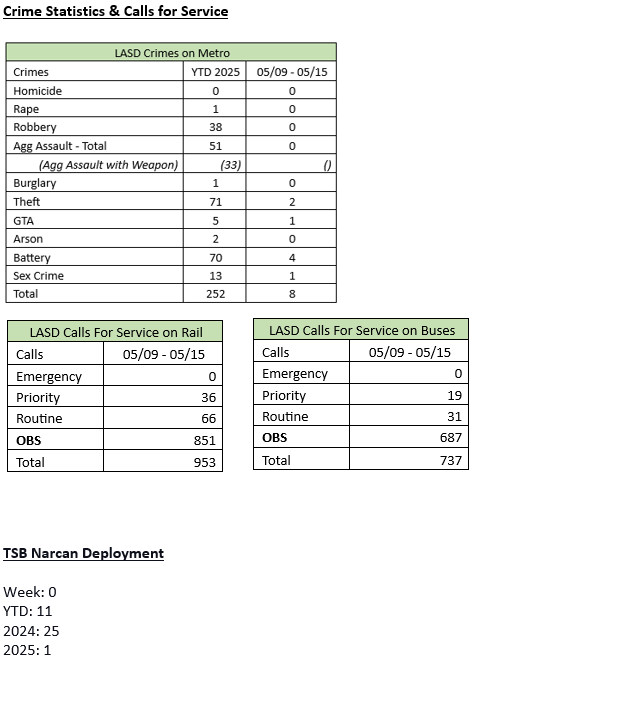 Transit Services Bureau (TSB) Deputies responded to the Metro division yard regarding a see-the-man report call for service. Upon arrival, Deputies contacted the Metro Supervisor, who stated that an unknown suspect entered the location and stole 100 feet of copper wire. The suspects cut the copper wire from the right-of-way track area and fled the location. The damage and repairs were estimated at $3,500. The suspect is still outstanding.