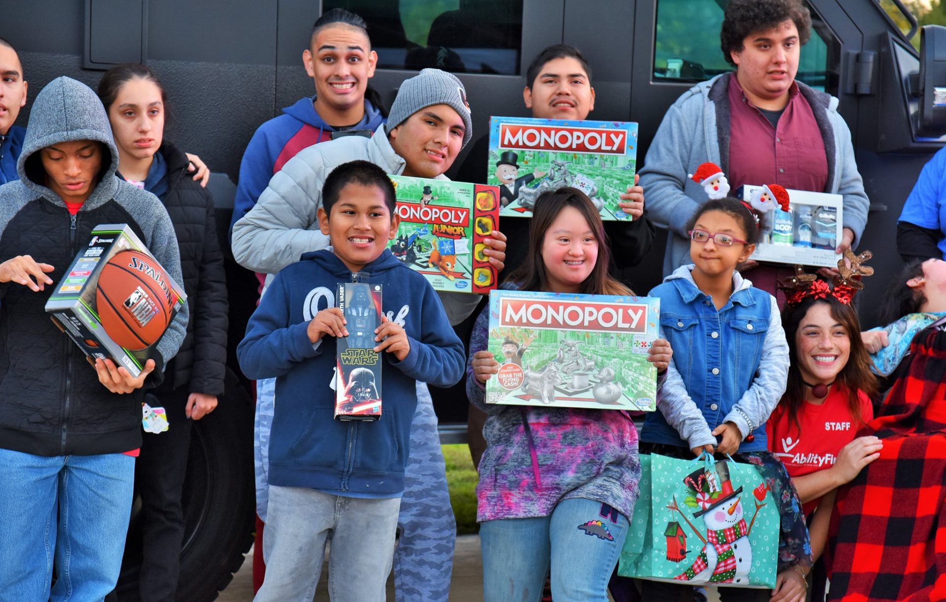 The event unfolded as Santa and one of his helping elves landed in the helicopter on the tarmac, right in front of the kids who were waiting for them with high anticipation. And, oh, were there miles of smiles! Next, everyone enjoyed an afternoon snack…and then the real fun began! The kids got exclusive access to Santa, with comforting hugs for everyone. Each child received a hand-delivered gift, specially chosen to fit their age and taste. Others who were curious and adventurous got to climb into one of Special Enforcement Bureau’s tactical armored vehicles and inspect the interior.