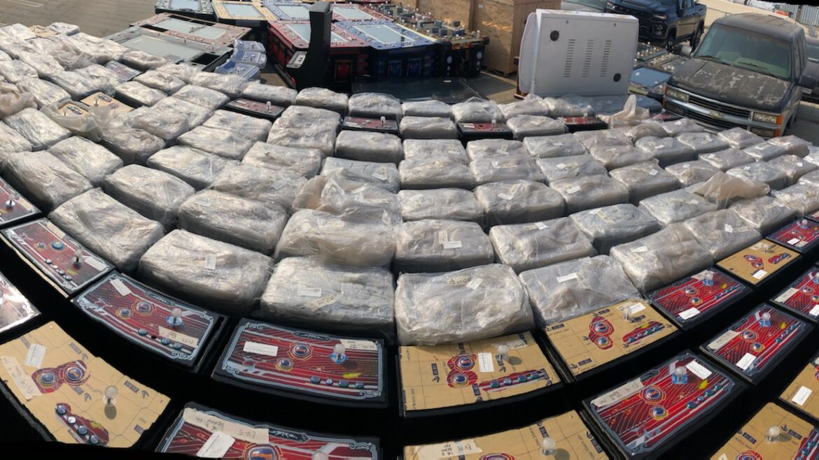 During the search warrant, detectives seized eight firearms and a large amount of narcotics which included over 100 lbs. of methamphetamines and approximately 15 lbs. of heroin. Two suspects, both adult males, were arrested for felon in possession of loaded firearms and narcotics for the purposes of sales.