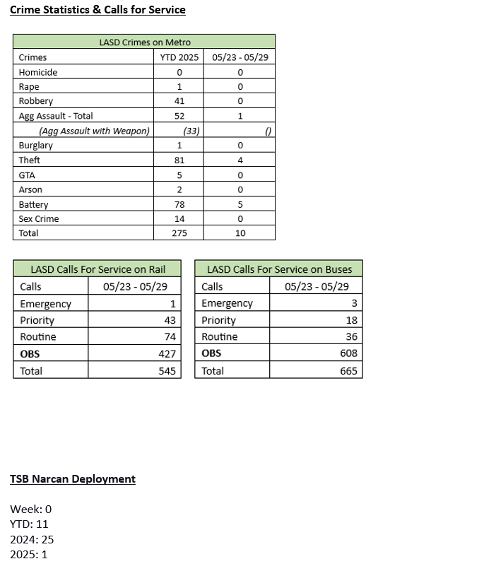 The TSB Weekly Update is not a complete list of all incidents, arrests, or events that occurred. The details within each incident description are preliminary information only and are not meant to replace those of a full investigation.