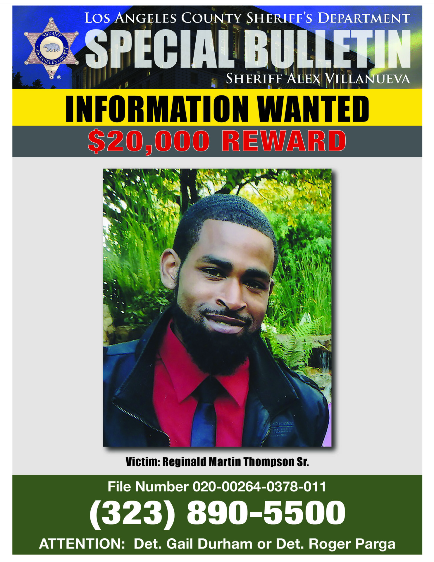“I wish to share my heartfelt condolences with the family of Reginald Thompson, Sr. for their tragic loss,” said Los Angeles County Board of Supervisors Chair Holly J. Mitchell, author of the motion that established this reward. “I encourage anyone who may have information that could help with this investigation to please come forward so that justice can be achieved for Reginald and his family.”